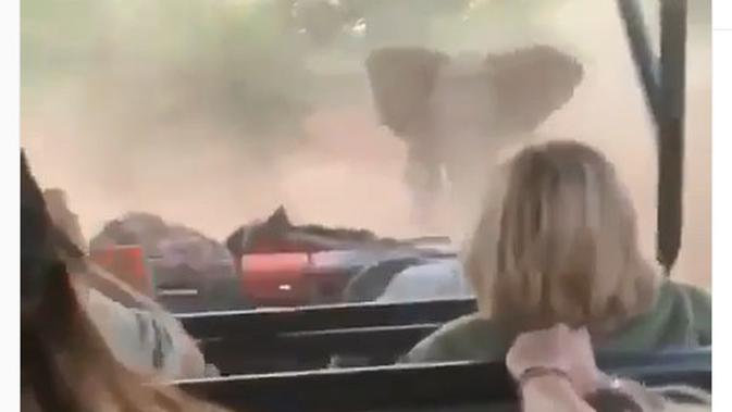 Menegangkan, Detik-Detik Mobil Wisatawan Dikejar Gajah Ngamuk